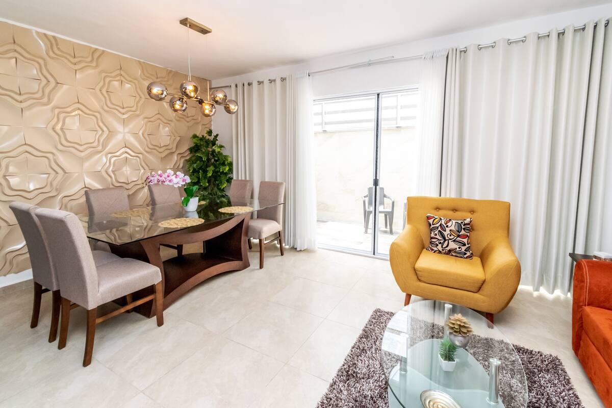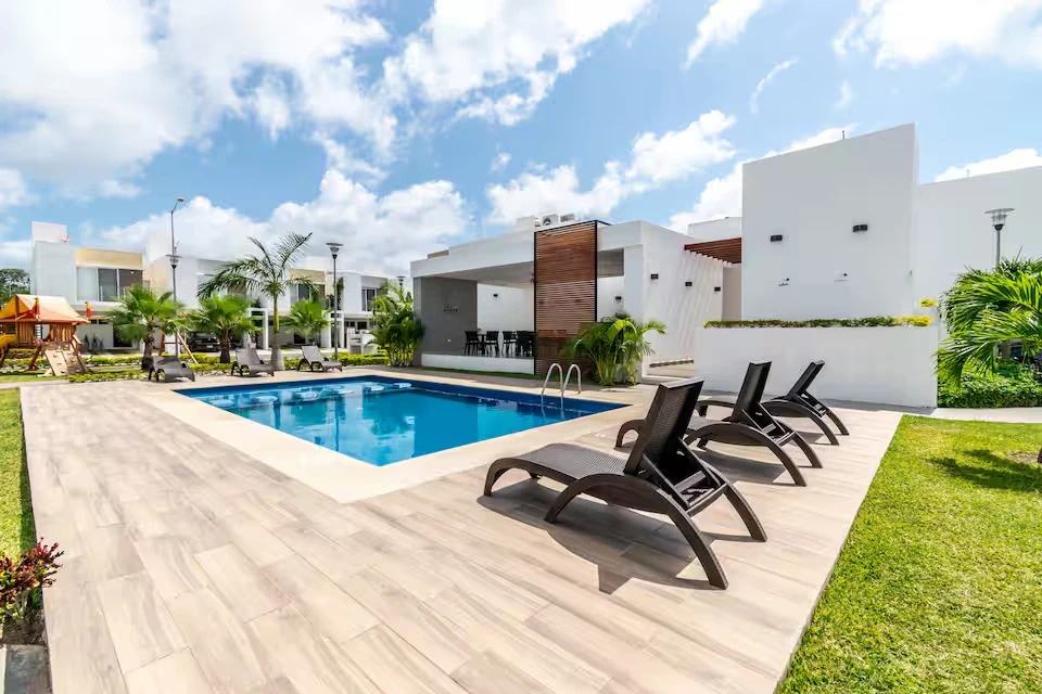 Stay with three bedrooms, equipped and comfortable, in a central private area, with controlled access, 24/7 surveillance, amenities, pool, sun loungers, showers, bathroom, palapa with bar, sink, grill used with charcoal, tables and chairs, a few steps from the private area you will find a pharmacy and a Go Mart convenience store with a gas station, on the avenue you will find restaurants, a bike path and a walking area, 15 minutes by car from the hotel zone and the Cancun International Airport.