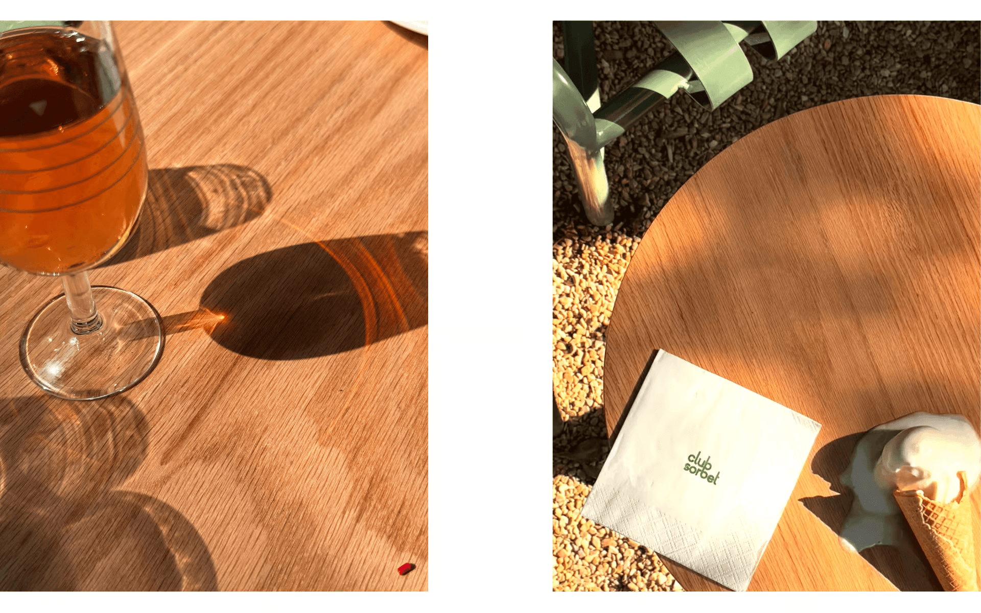 More than just an ice cream shop, Club Sorbet is a concept that blends gelato, coffee, and wine in a hidden spot behind a parking lot. Its visual identity and atmosphere make it a perfect place to spend an afternoon with friends.