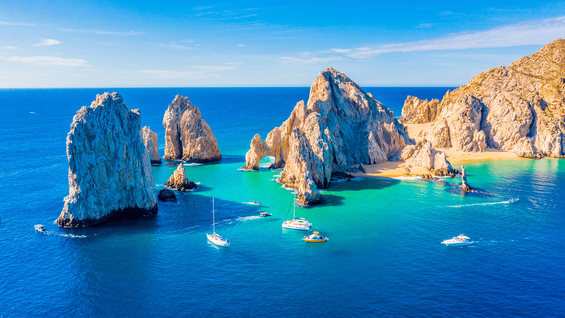 Located at the tip of the Baja California Peninsula, Cabo San Lucas is famous for its dramatic landscapes, stunning beaches, and high-end resorts. Whether you’re into water sports like snorkeling, jet-skiing, or sport fishing, or you prefer lounging at world-class beach clubs, Cabo has it all. Don’t miss the iconic Arch of Cabo San Lucas, a rock formation that stands at the entrance of the bay.